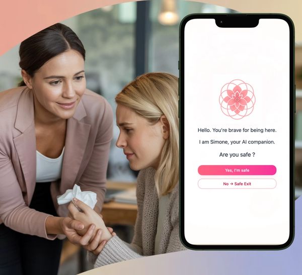 The instant her world shifts. Simone checks in on safety and readiness, helping you breathe and take your first step forward.